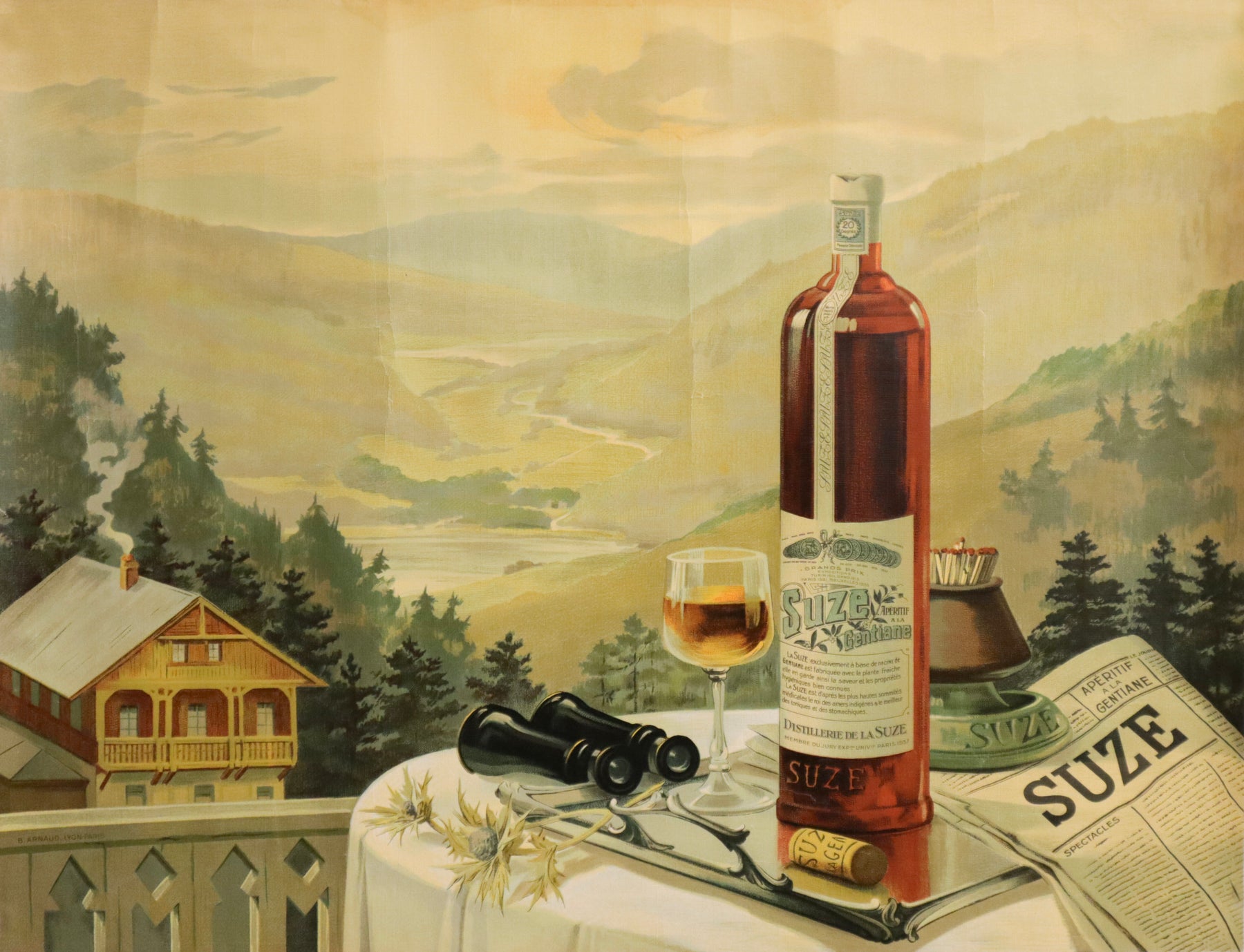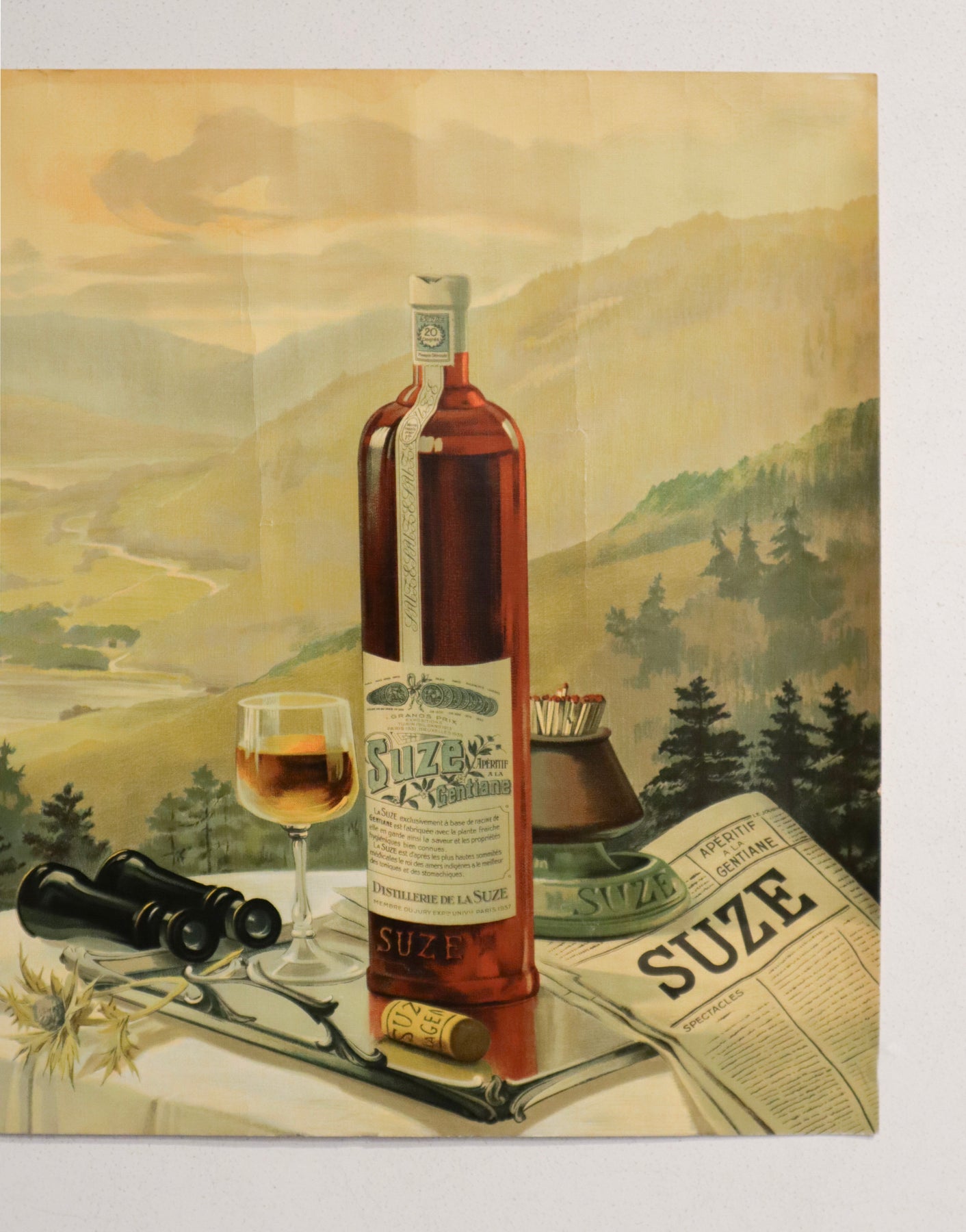 About the poster : Suze is a classic French bitter-style aperitif, made principally from the roots of the gentian plant. It is known for its bright yellow colour and bittersweet, herbal-earthy taste, a distinctive profile that sets it apart from many liqueurs. From its early days, Suze gained broad appeal. It won a gold medal at the 1900 Paris Universal Exhibition, a significant recognition that helped cement its reputation. By the 1920s and 1930s, thanks to intensive marketing and café-culture popularity, Suze had become one of France’s foremost aperitifs. (Wikipedia)