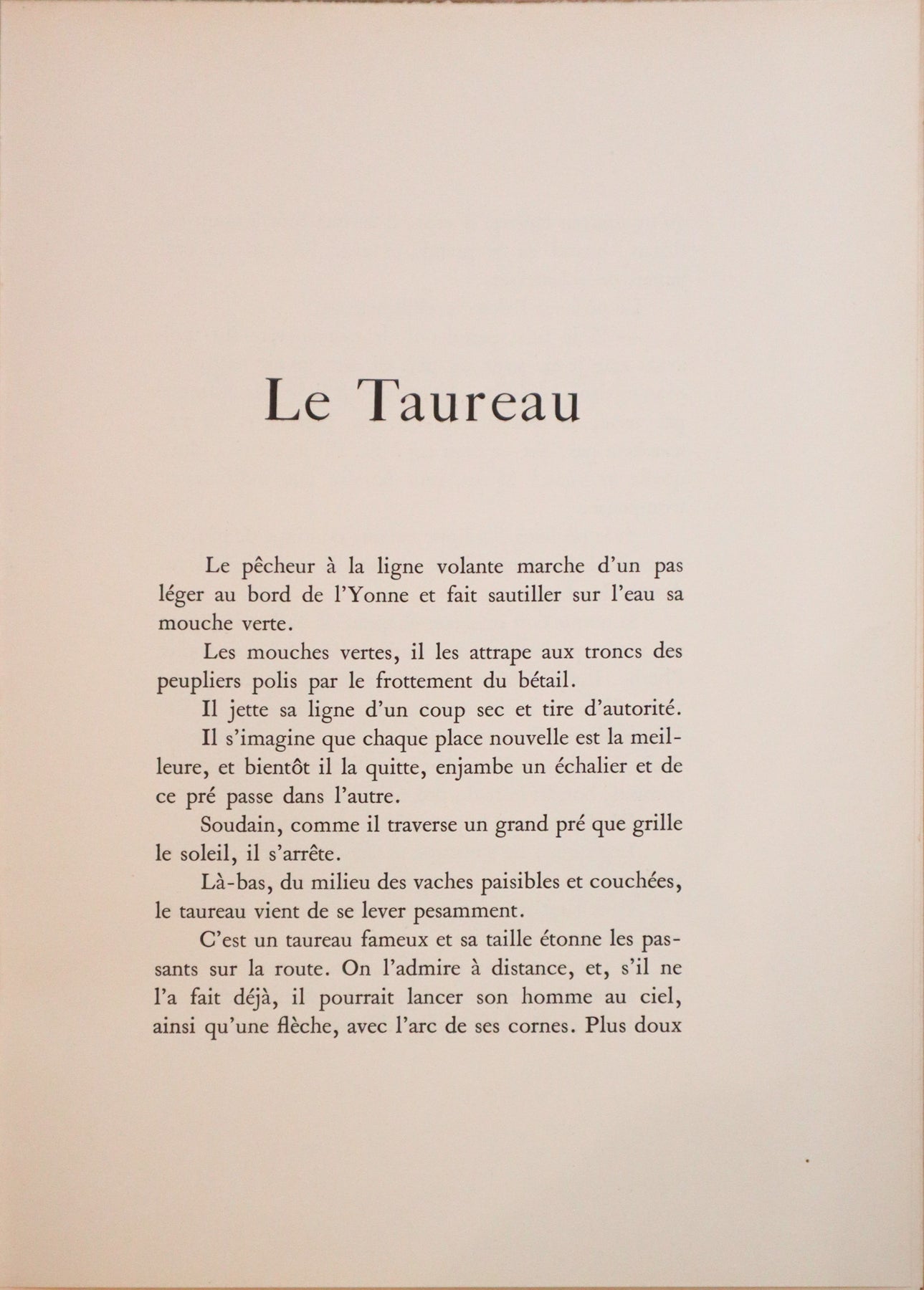 1949 French Book Illustration, Histoires Naturelles, Le Taureau - Toulouse-Lautrec & Jules Renard