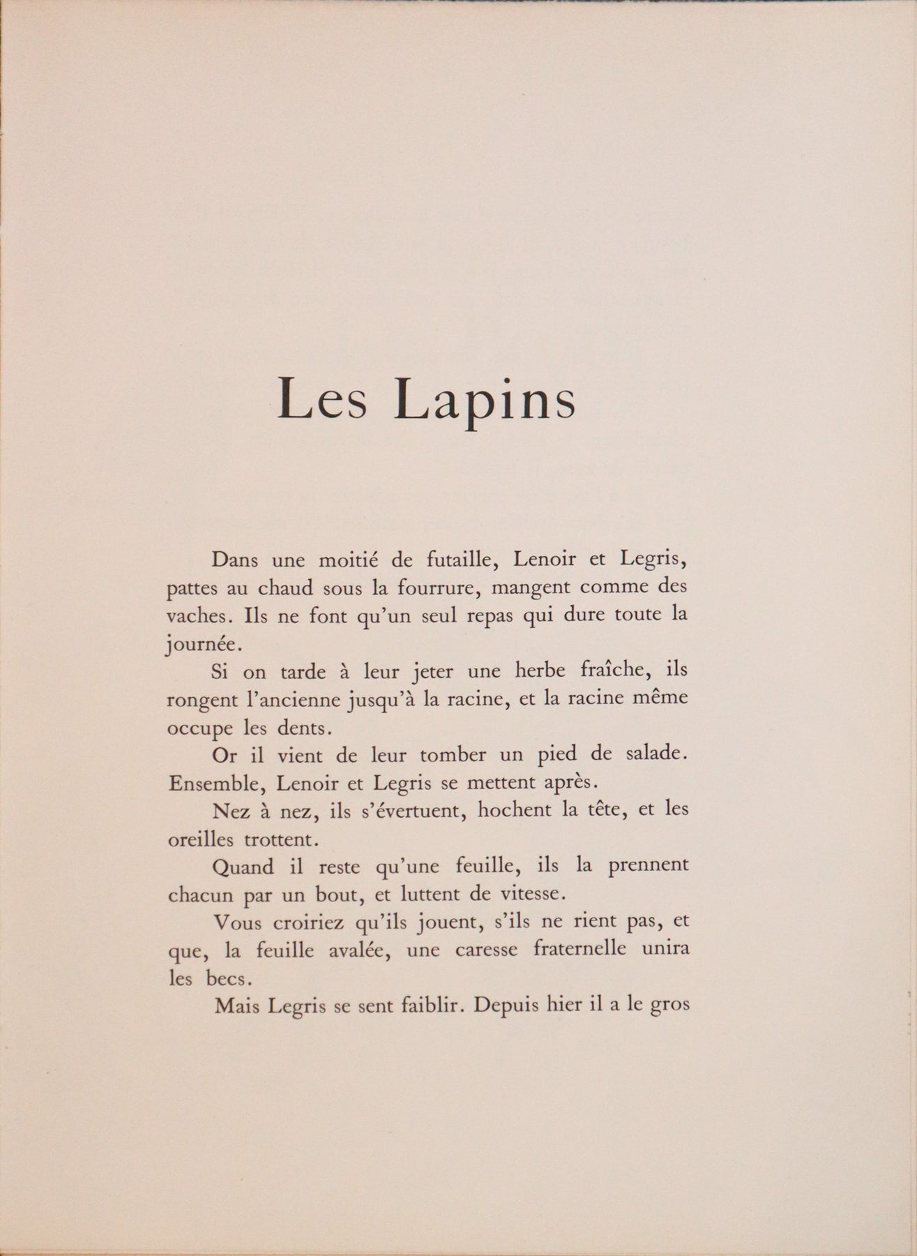 1949 French Book Illustration, Histoires Naturelles, Les Lapins - Toulouse-Lautrec & Jules Renard