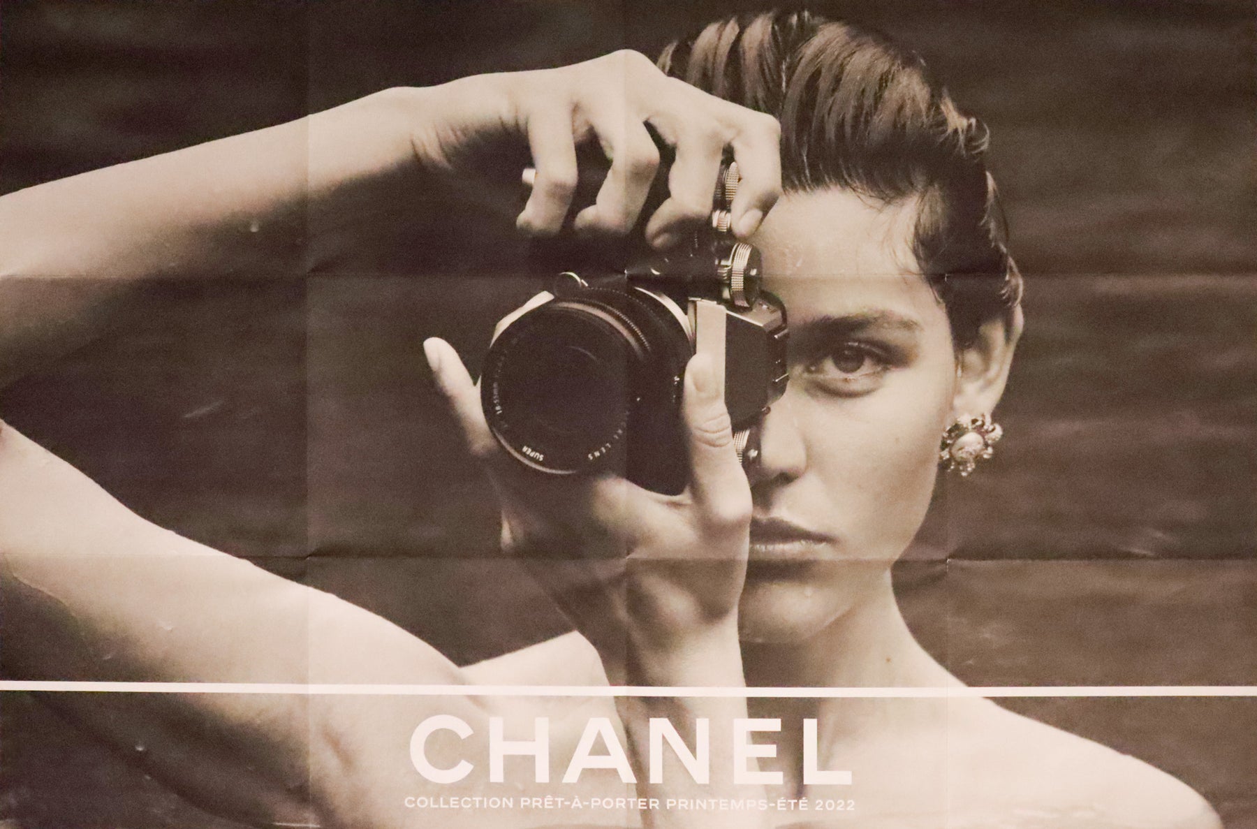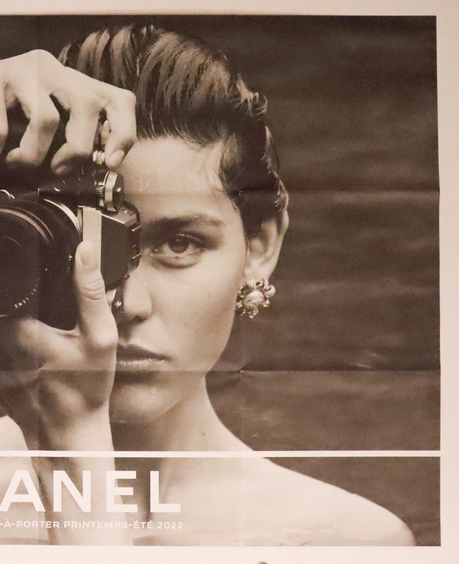 About this poster: Created for Chanel’s Spring–Summer 2022 Ready-to-Wear collection, this striking black-and-white poster captures the modern elegance and confident allure of the iconic fashion house. The collection was unveiled at the Grand Palais Éphémère in Paris on October 5, 2021, and accompanied by a film release later that day on chanel.com. Both the image and composition embody the timeless sophistication and artistic vision that define Chanel’s enduring legacy.