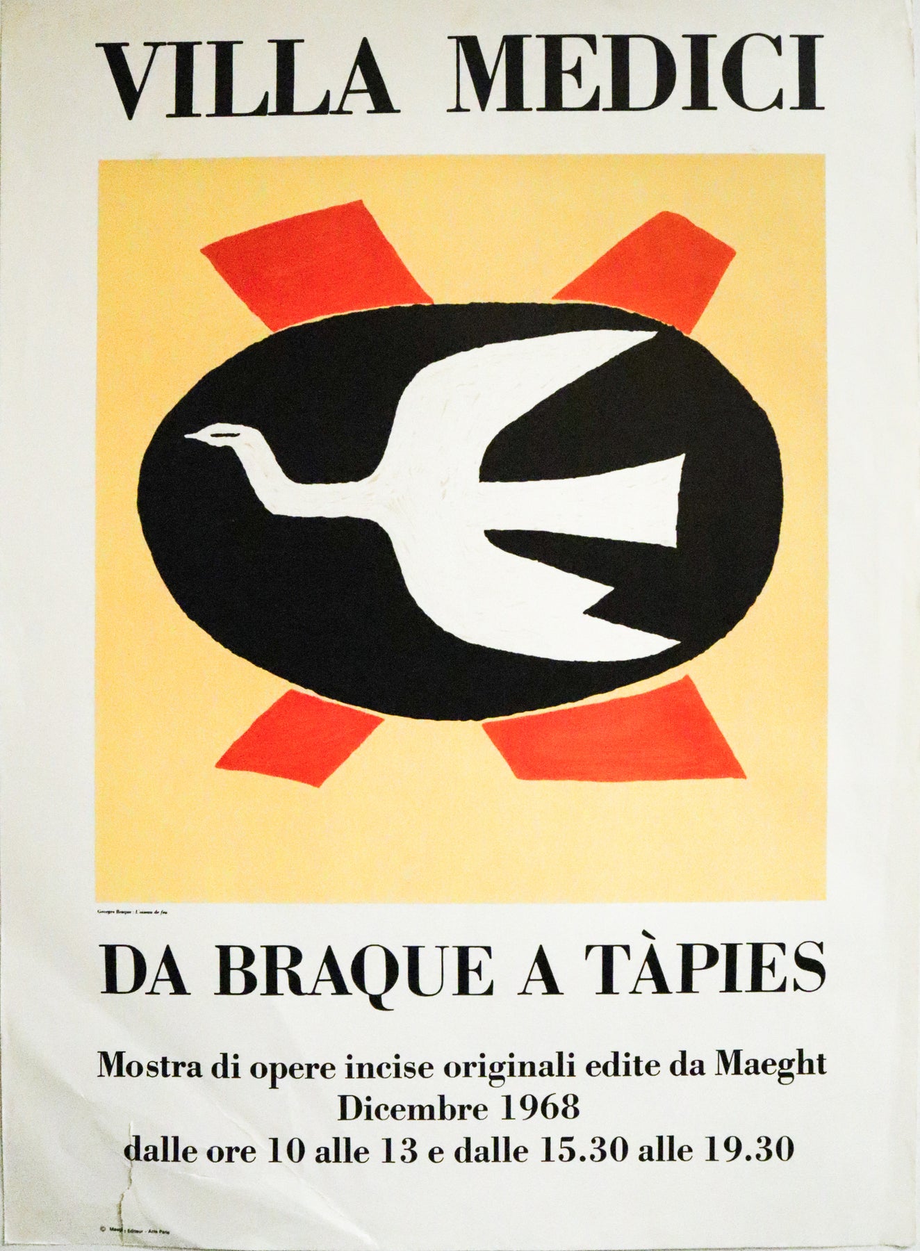 1968 Italian Exhibition Poster, Villa Medici, Da Braque A Tàpies