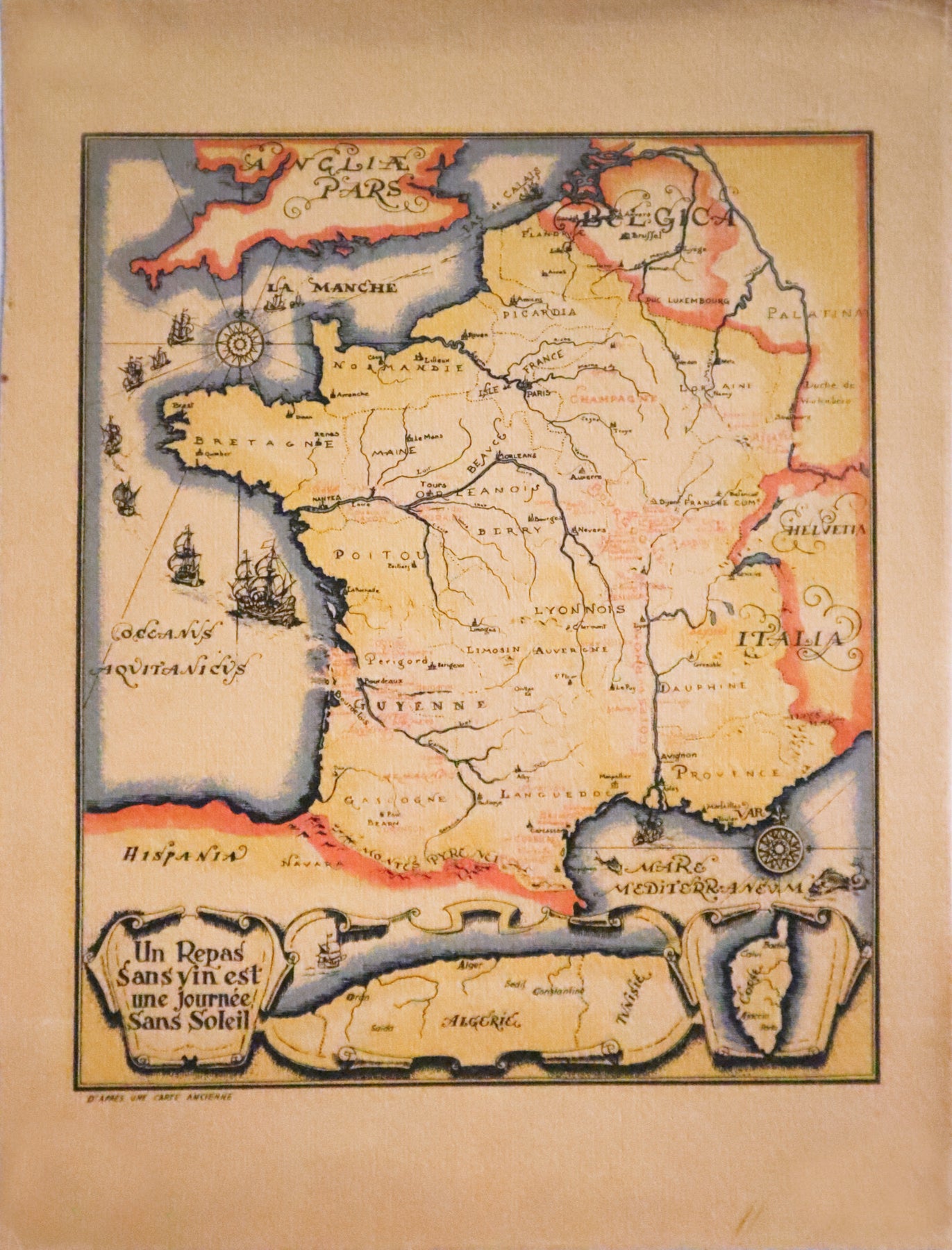 Printed in 1954, this piece blends historical flair with mid-century design, perfect for wine lovers and Francophiles alike. Ready to frame !