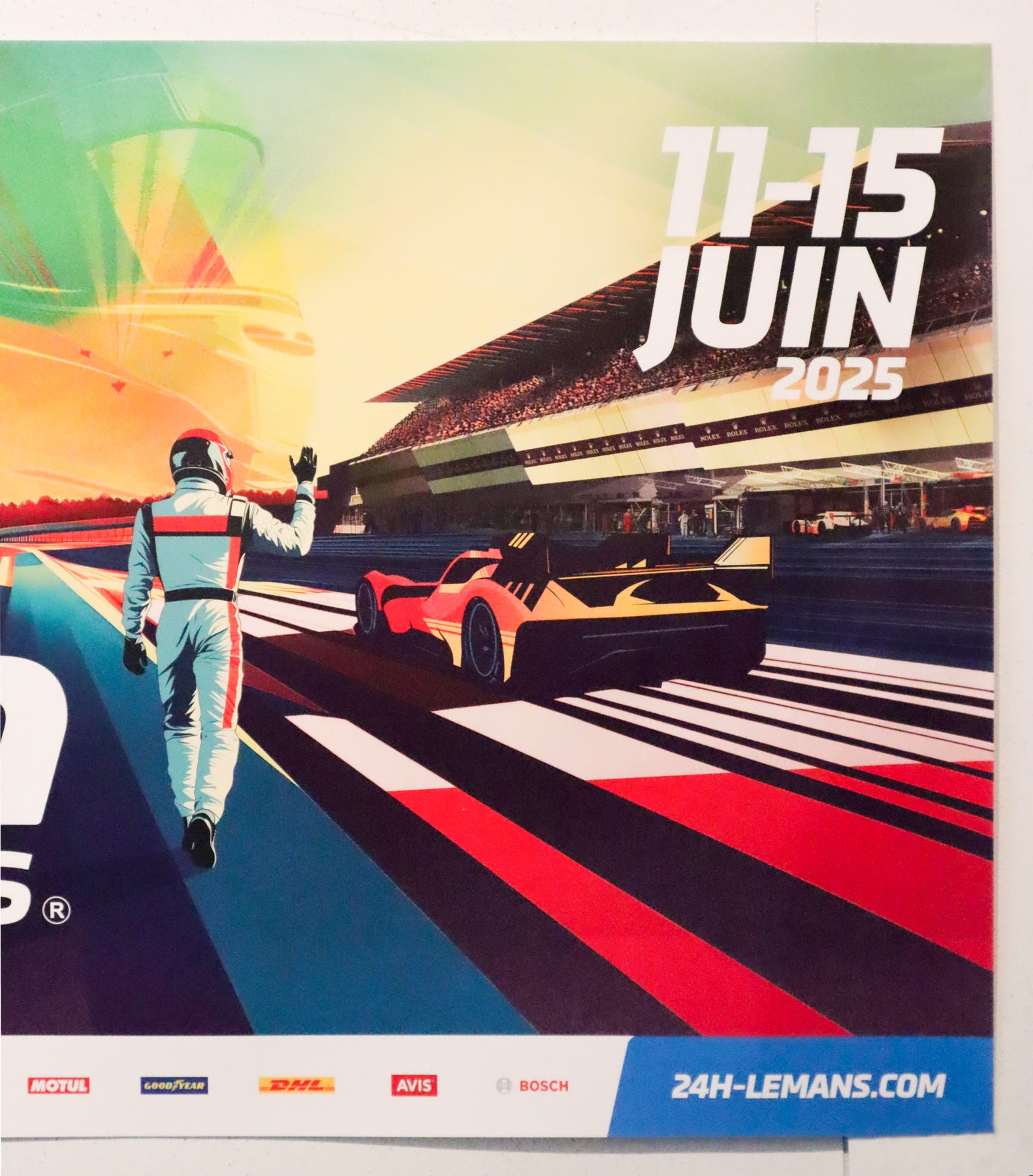 About the poster: The Circuit des 24 Heures du Mans, also known as Circuit de la Sarthe (after the 1906 French Grand Prix triangle circuit) located in Le Mans, Sarthe, France, is a semi-permanent motorsport race course, chiefly known as the venue for the 24 Hours of Le Mans auto race. Comprising private, race-specific sections of track in addition to public roads which remain accessible most of the year, its present configuration is 13.626 km (8.467 mi) long, making it one of the longest circuits in the world. The capacity of the race stadium, where the short Bugatti Circuit is situated, is 100,000. (Wikipedia)