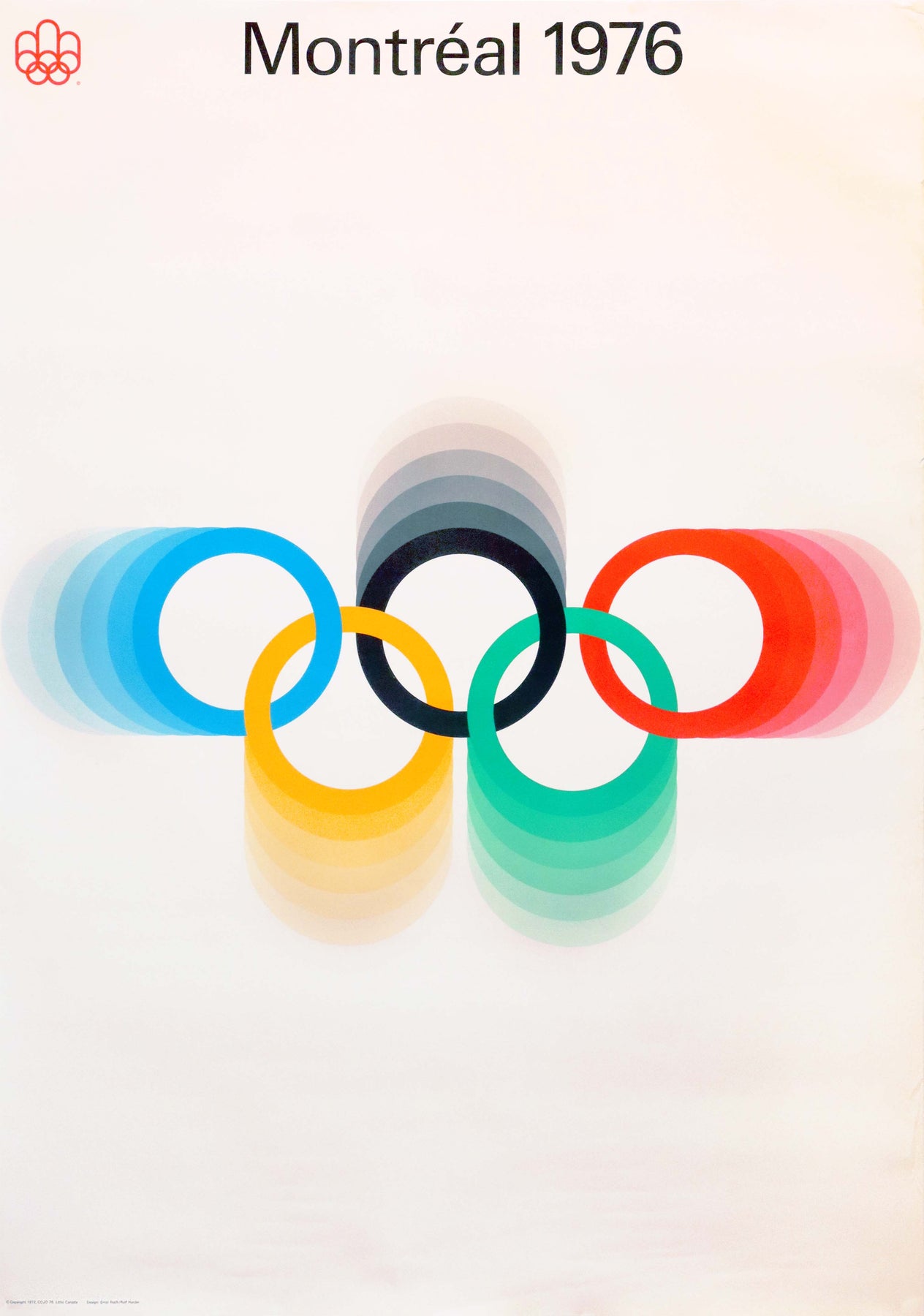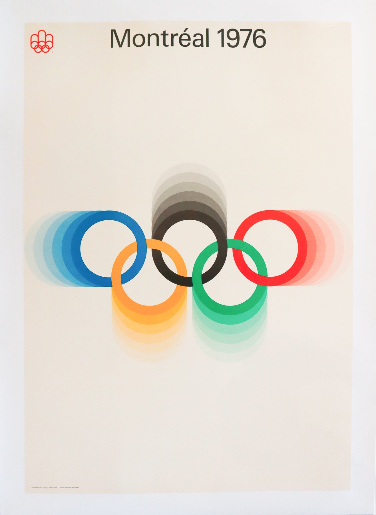 Designed for the Montreal Olympic games by Ernst Roch + Rolf Harder, this poster has become as symbolic of the games as the stadium built in Montreal for the occasion. According to the Canadian Graphic Design Association, "Harder was born in Hamburg, Germany in 1929. He studied at the Hamburg Academy of Fine Arts and spent most of the 1950s working as a designer and art director in both German and Canadian ad agencies and design firms. He moved to Montreal in 1959 and opened his firm, Rolf Harder Design. Six years later he founded Design Collaborative—a graphic and industrial design company with offices in Toronto and Montreal—with three other partners: Ernst Roch, Anthony Mann and Al Faux. In 1972, he was a founding member of Editions Signum and Signum Press, publishers of limited editions of original graphics and books. In 1978, he formed Rolf Harder & Assoc. Inc. in Montreal, and spent the next 20 years working in virtually all facets of graphic design, most notably corporate identities, posters, books, and annual reports."