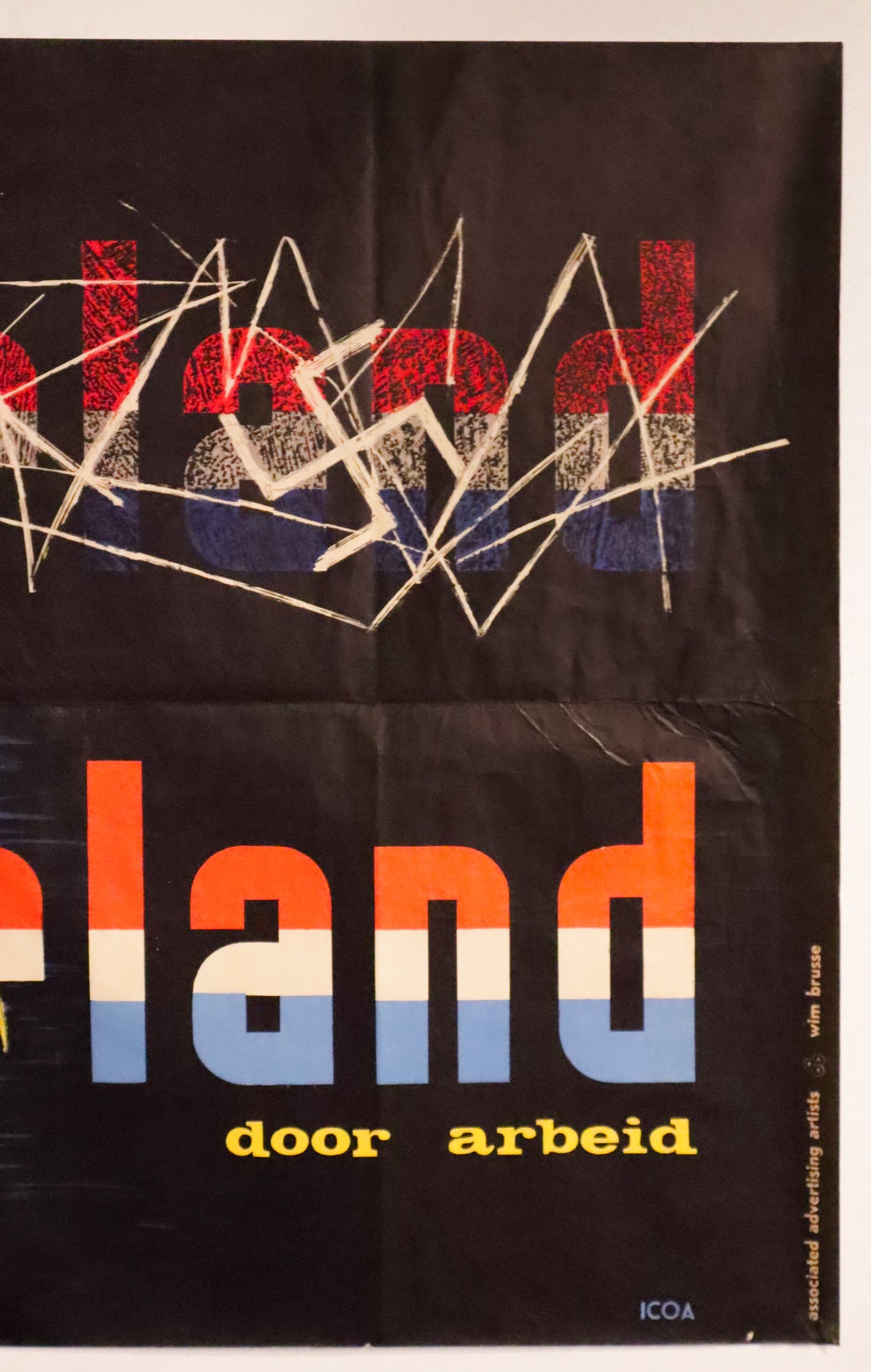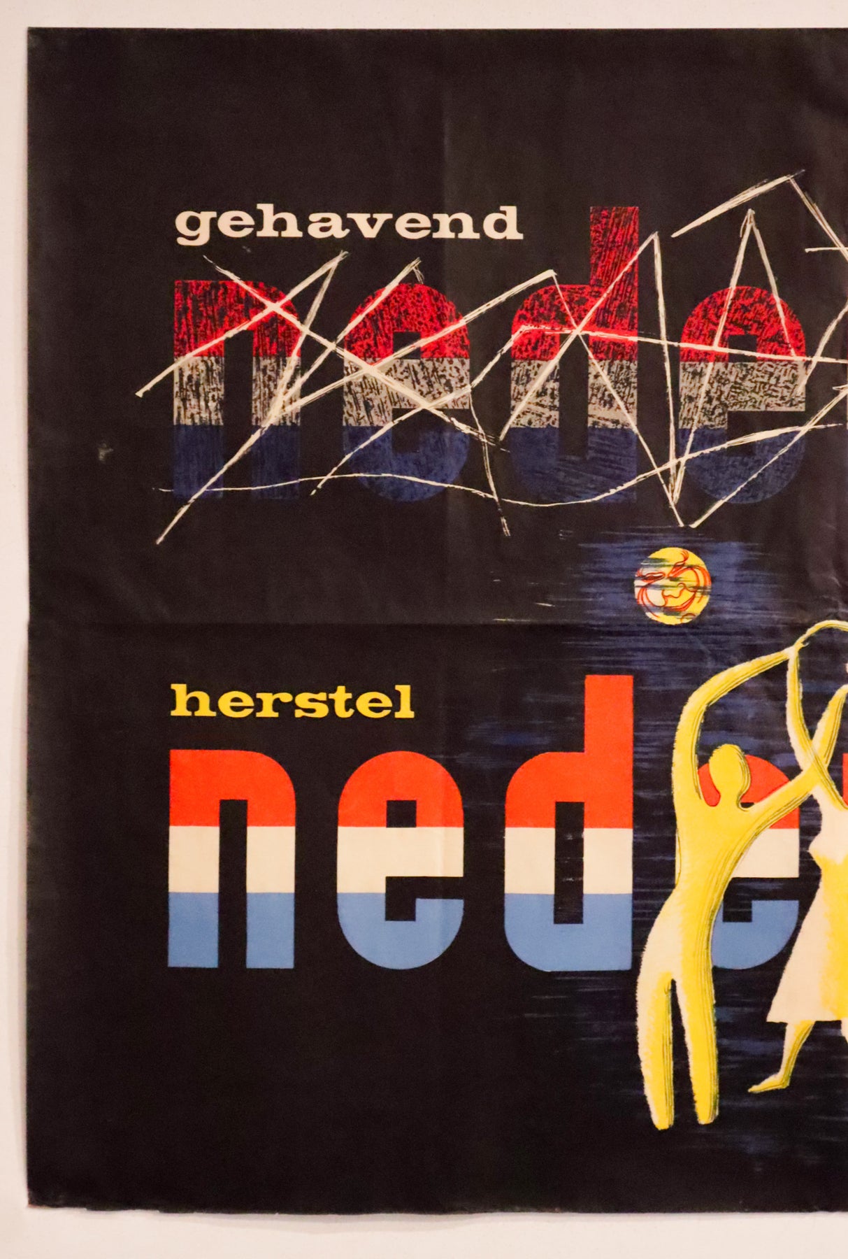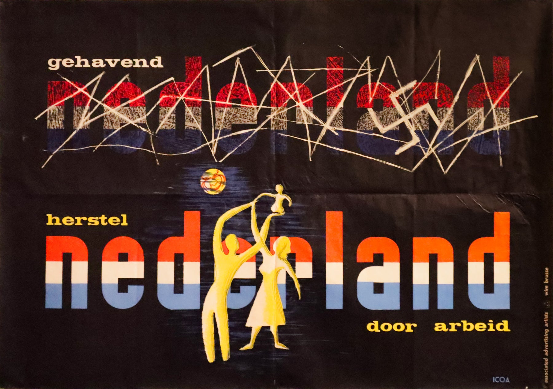About the poster: "Battered Netherlands, Restore the Netherlands, through labor" is a post-war slogan designed to stimulate the reconstruction of the Netherlands after the Second World War. Ready to frame !