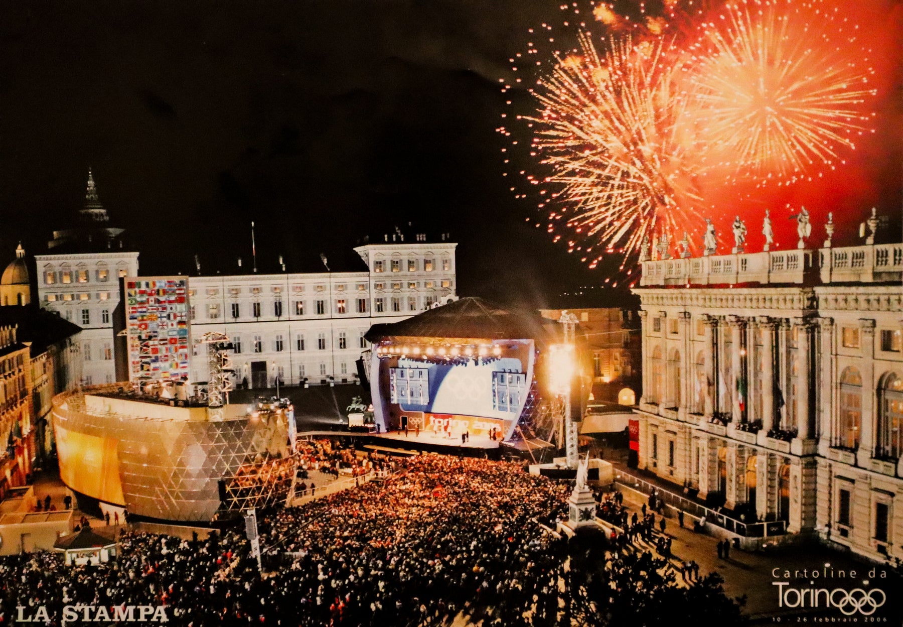 This poster features a photograph of the closing ceremony of the 2006 Winter Olympics in Turin, Italy. It was produced by La Stampa, one of Italy's oldest and most prominent newspapers. It is in great condition - see photos for more details.