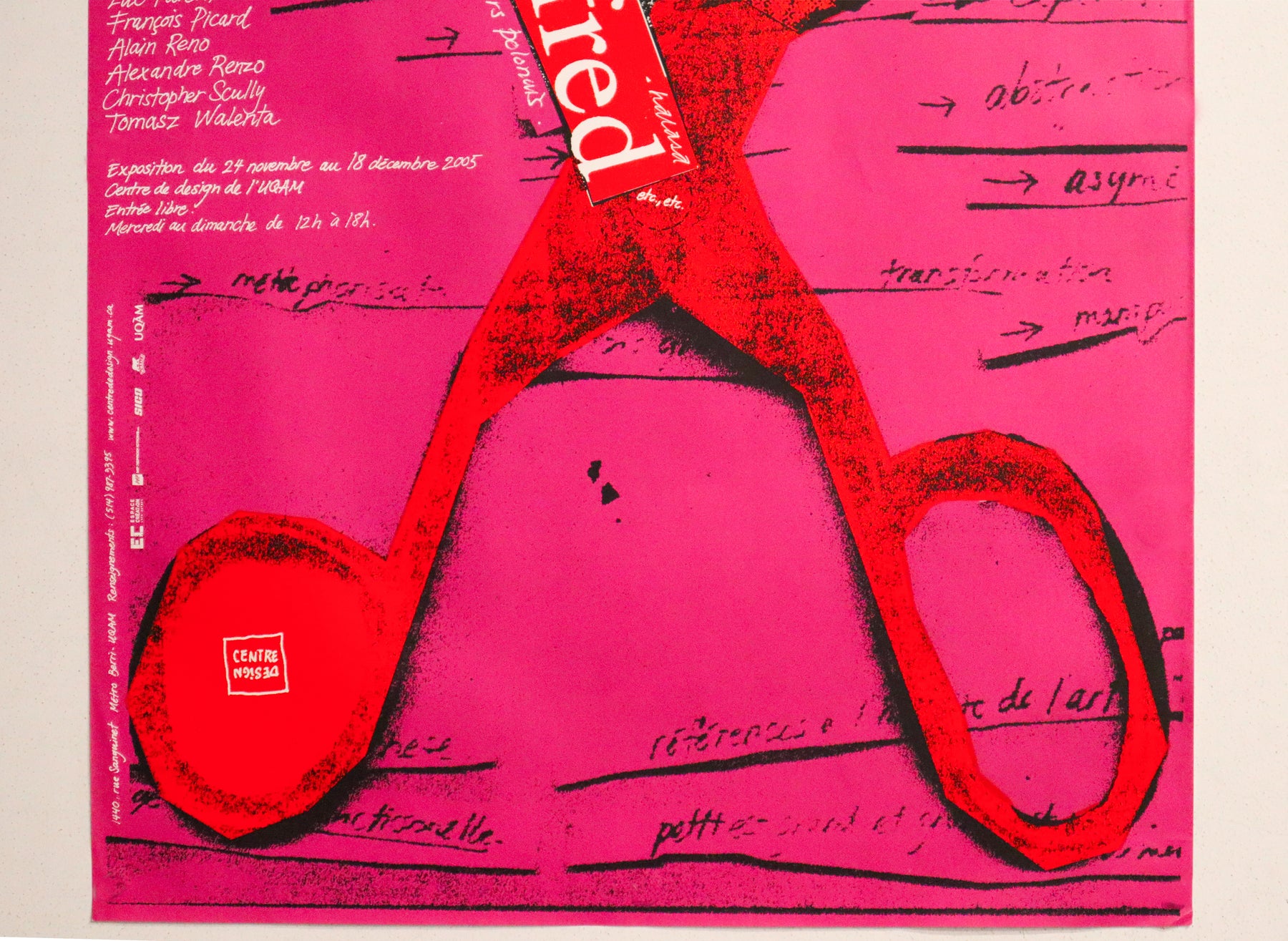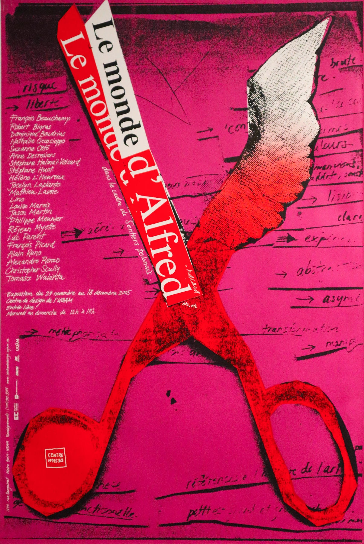 À propos de l'affiche: C'est une affiche pour une exposition au centre du design à l’UQAM organisée par Alfred Halasa, présentant des œuvres de plus de 20 artistes et designers.