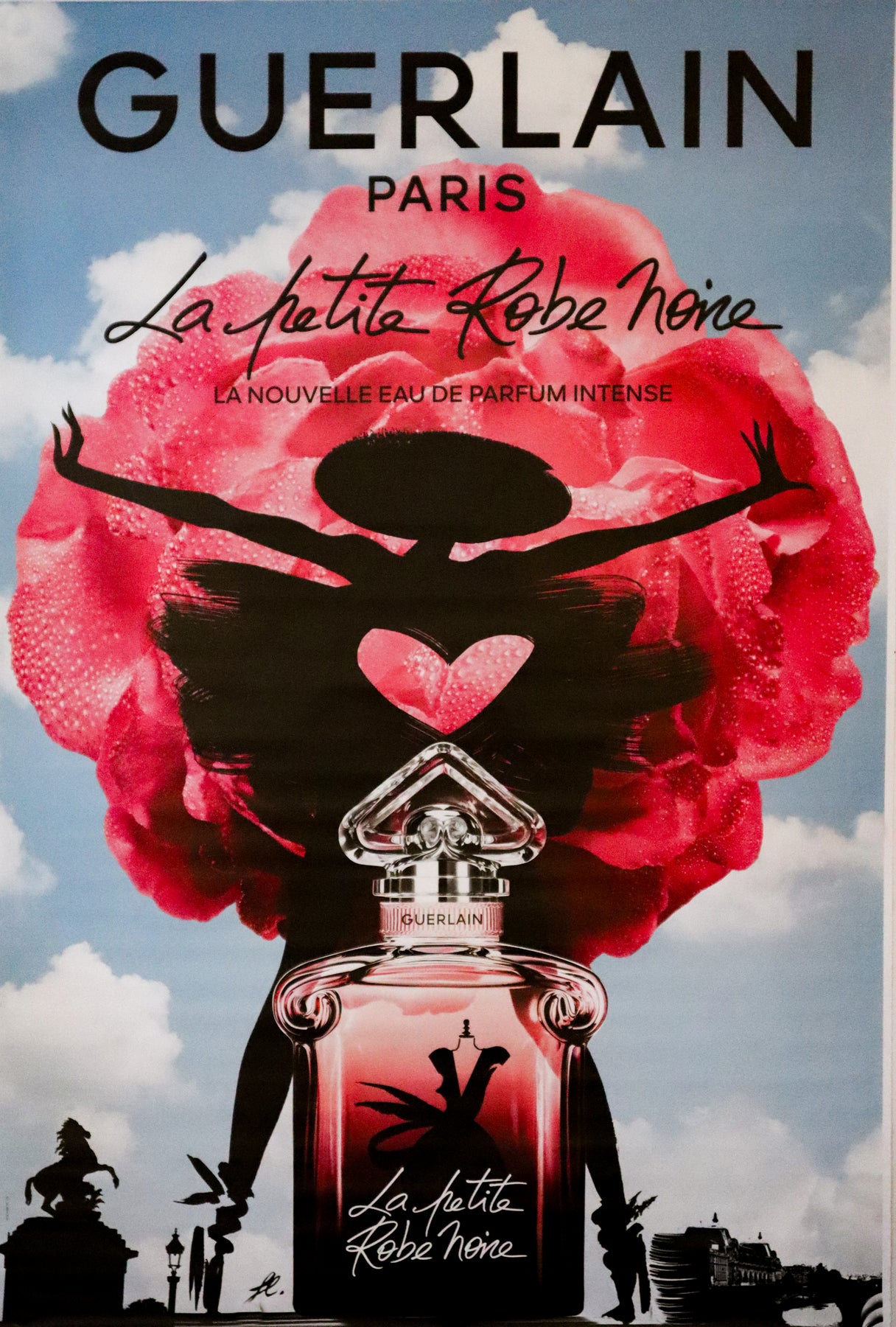 À propos de l'affiche : C'est une publicité française d'abribus de Paris pour La petite robe noire Parfum par Guerlain. Le parfum est censé être un parfum polyvalent et essentiel - tout comme une petite robe noire l’est pour une garde-robe!