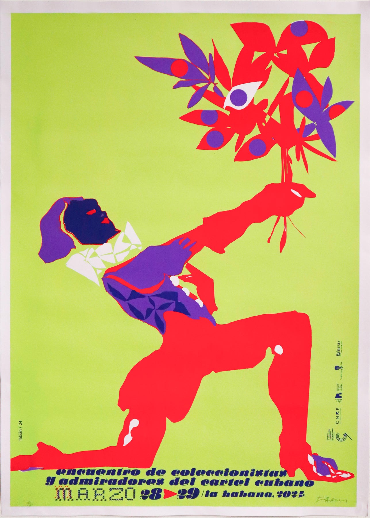À propos de l'affiche : Ceci est une affiche conçue par l’artiste cubain Fabian Muñoz pour une réunion de collectionneurs d’affiches à La Havane. Munoz est un artiste cubain travaillant principalement dans la publicité : publicités, design éditorial, logos, etc. Il est également connu pour ses dessins et ses livres pour enfants. Il perpétue l’héritage de son père, un maître de l’affiche cubaine, qui a conçu plus de 1000 affiches pour l’Institut du film cubain.