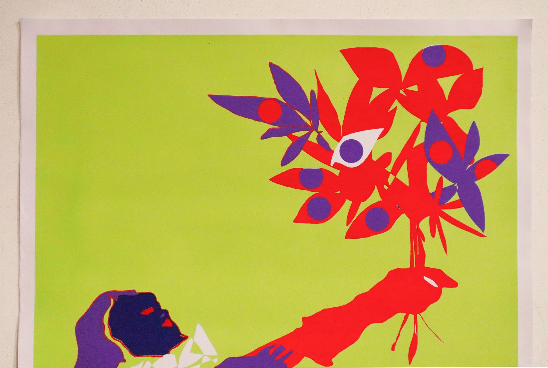 Le style graphique et les couleurs vives de la pièce ajouteront une touche vibrante à n’importe quel mur! Cette affiche est en bon état, numérotée et signée par l'artiste. Prête à être encadrée!
