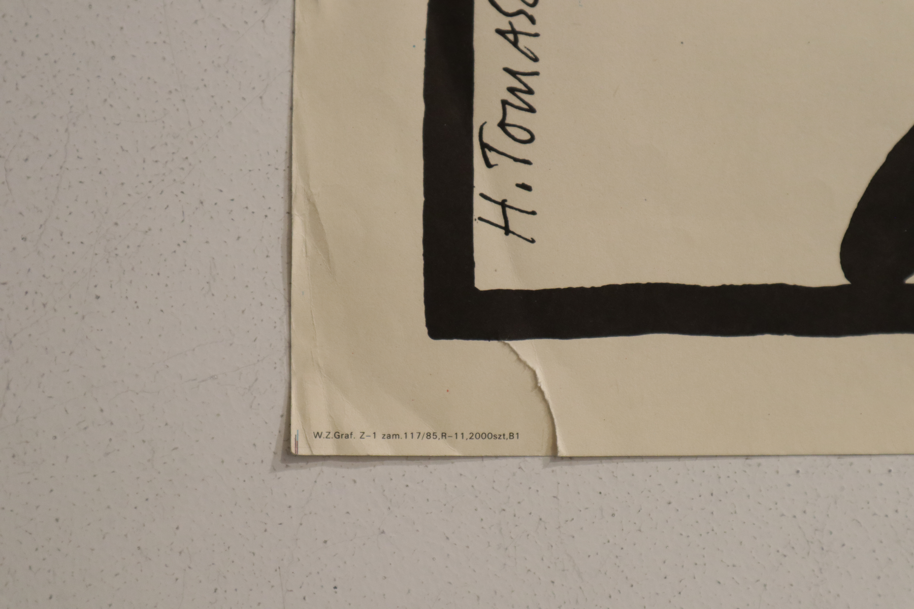À propos de l'artiste : Tomaszewski, l'un des meilleurs graphistes et affichistes au monde, était illustrateur et professeur, pionnier de l'école d'affiches polonaise. Né le 10 juin 1914 à Varsovie ; décédé le 11 septembre 2005 à Varsovie. La force de ses œuvres graphiques réside dans une traduction simple et intelligente de messages et de symboles issus de la littérature, du théâtre, du cinéma, de la musique et de thèmes sociaux dans un langage visuel. Il a lui-même admis avoir « passé toute sa vie à rechercher de tels signes qui seraient compréhensibles pour tout le monde ». (culture.pl)