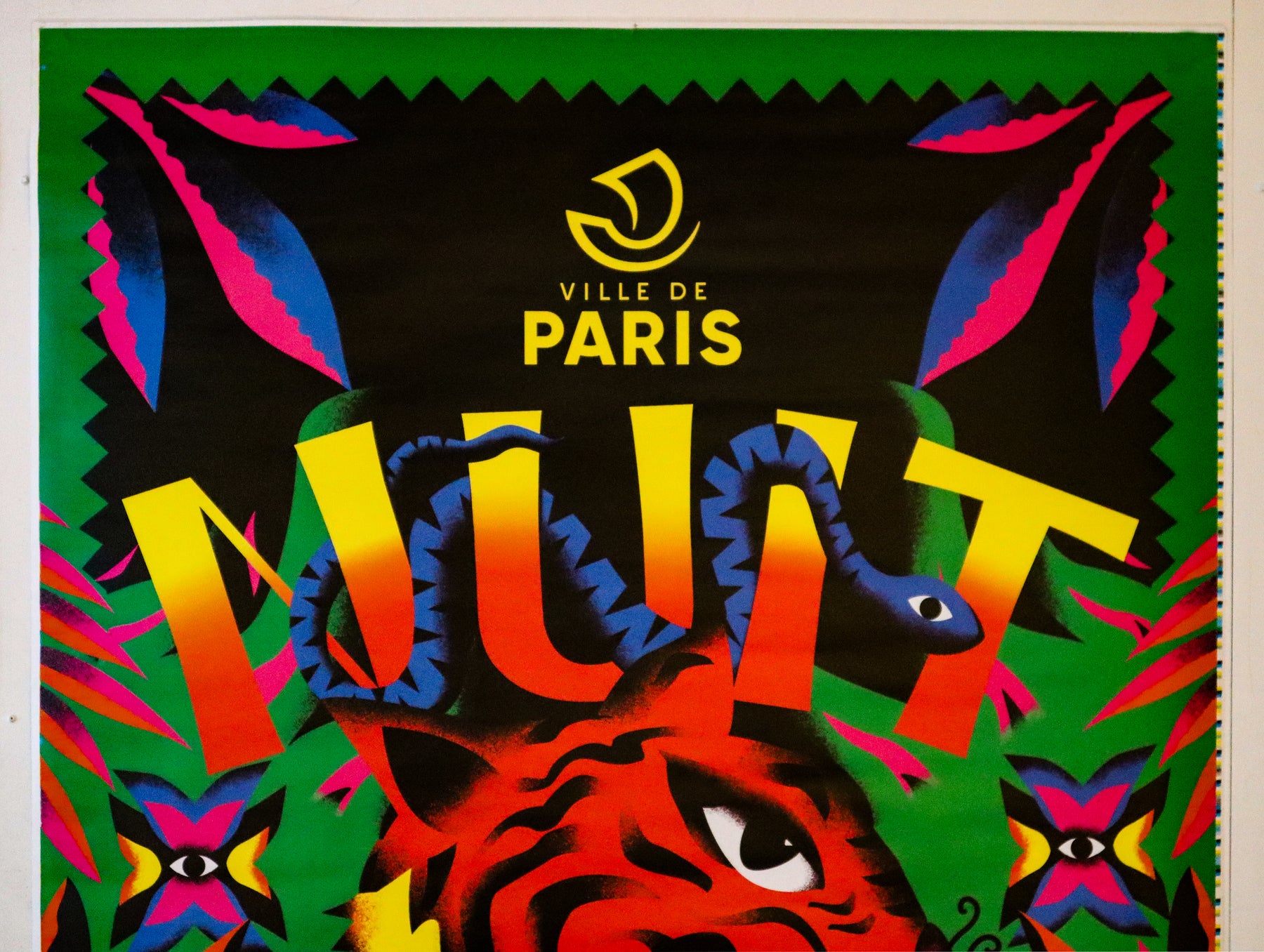 À propos de l'affiche : Conçue par Marine Crispin, cette affiche est une publicité d'abribus pour la Nuit Blanche, festival d’art annuel à Paris. Marine Crispin est une graphiste française basée à Paris, ayant travaillé pour de nombreuses grandes marques telles que Nike et Pinterest.